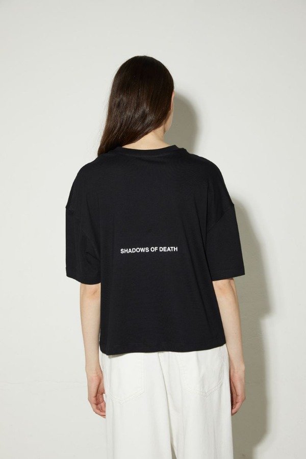 Remera ancha de algodón, estampada en frente y espalda