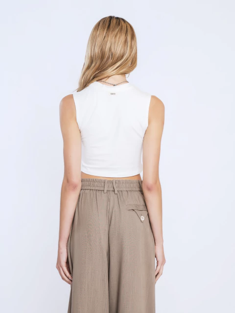 Musculosa corta de algodón con lycra, escote cerrado