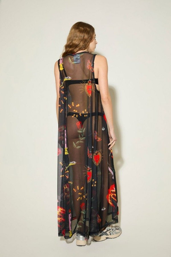 Vestido musculosa oversize de microtul, estampado full